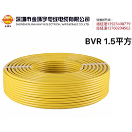 金環(huán)宇BVR 1.5平方電線中文名:銅芯聚氯乙烯絕緣軟護(hù)套電線。1.5表示BVR電線的橫截面積。金環(huán)宇bvr系列電線常用于家裝布線。